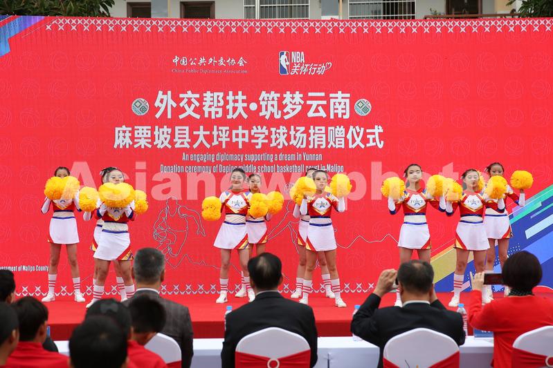 2021年10月17日,由中国公共外交协会主办的“外交帮扶 筑梦云南”运动场捐赠交付仪式在云南省麻栗坡县大坪中学举办。仪式结束后,NBA专业教练员与大坪中学的学生进行了篮球训练互动。