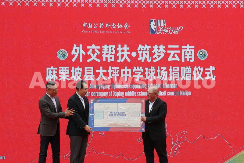 2021年10月17日,由中国公共外交协会主办的“外交帮扶 筑梦云南”运动场捐赠交付仪式在云南省麻栗坡县大坪中学举办。仪式结束后,NBA专业教练员与大坪中学的学生进行了篮球训练互动。