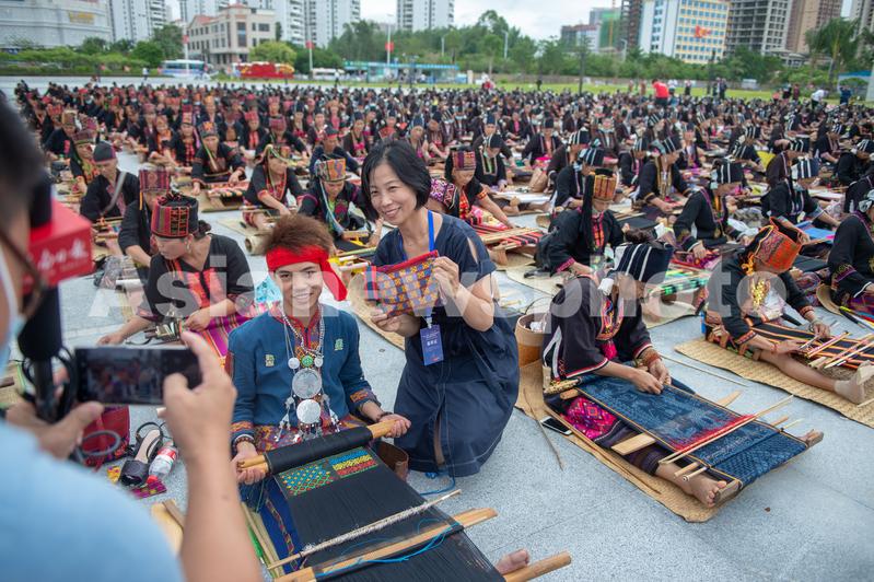 图片说明:2021年10月16日,在海南省东方市文化广场,唯一男生黄杨伟吸引人拍照。