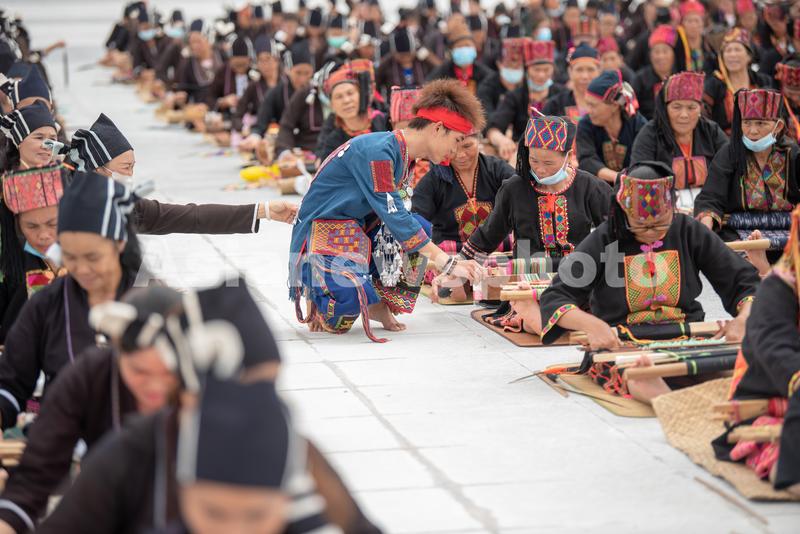 图片说明:2021年10月16日,在海南省东方市文化广场,23岁的黎族小伙黄杨伟和长辈们学习交流。
