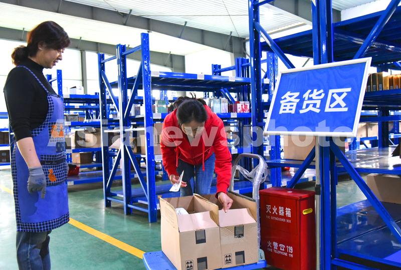 图片说明:2021年10月20日,连云港综合保税区一家跨境电商物流仓库,工作人员按照订单进行备货。