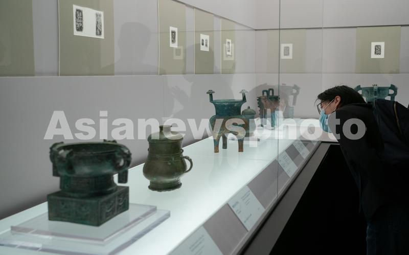 图片说明:正在上海博物馆四楼第三临展厅展出的噩国青铜器精粹展展览现场