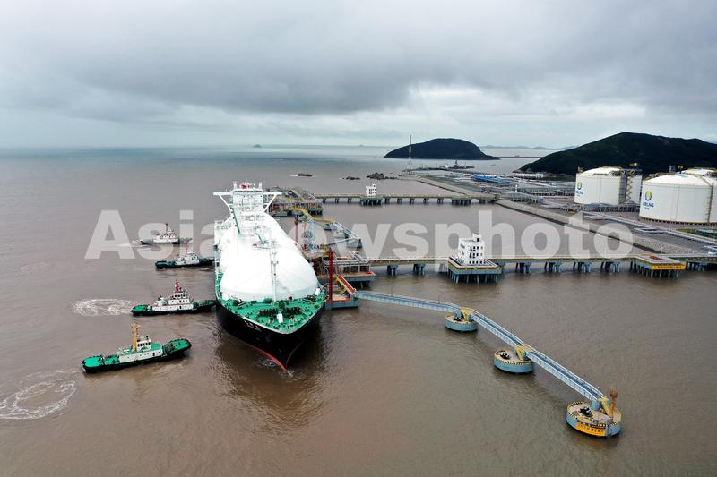 图片说明:2021年10月13日,巴拿马籍的“BISHU MARU”(尾州丸)号LNG船带着15.5万方天然气从美国安全抵达浙江舟山。