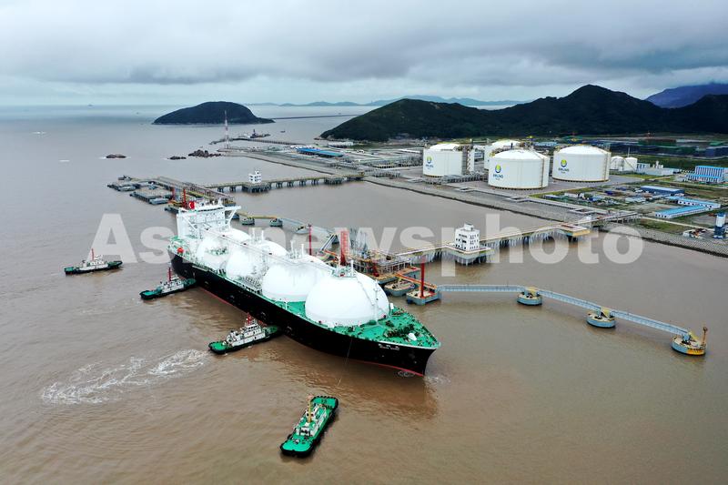 图片说明:2021年10月13日,巴拿马籍的“BISHU MARU”(尾州丸)号LNG船带着15.5万方天然气从美国安全抵达浙江舟山。