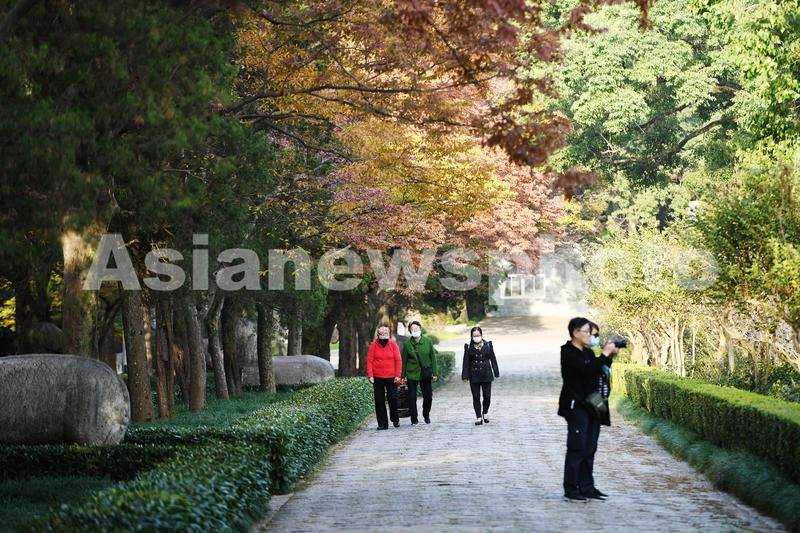 2021年10月24日,南京,深秋时节,南京明孝陵秋意渐浓,最美600米石像路五色斑斓,景色怡人。