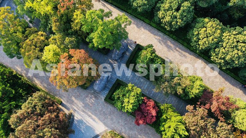 2021年10月24日,南京,深秋时节,南京明孝陵秋意渐浓,最美600米石像路五色斑斓,景色怡人。