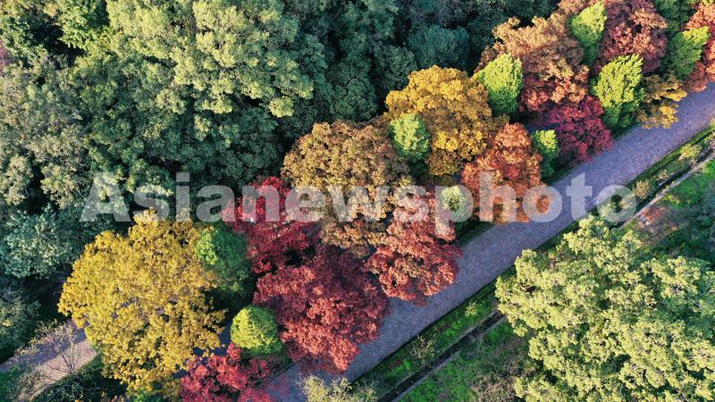 2021年10月24日,南京,深秋时节,南京明孝陵秋意渐浓,最美600米石像路五色斑斓,景色怡人。