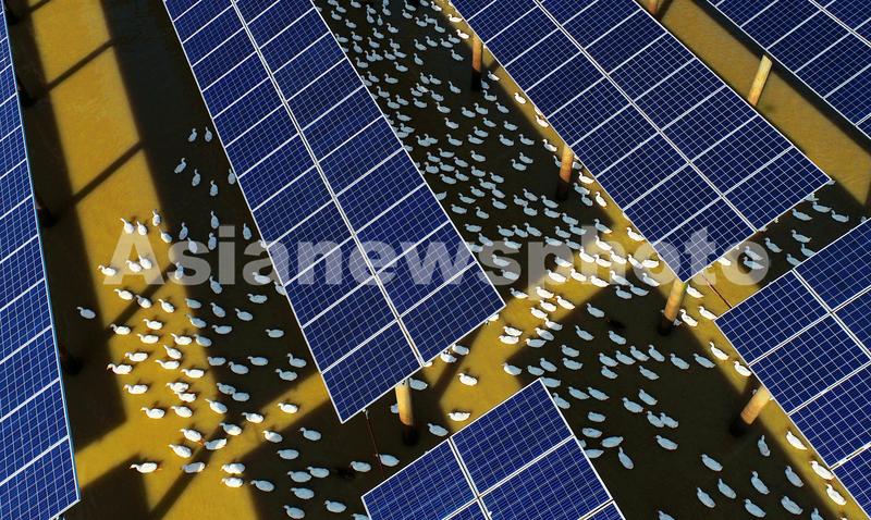 近年来,庐江县白湖镇整合改造荒滩发展光伏产业,采取“水上光伏发电、水面放养蛋鸭、水下养殖鱼虾”等多元立体方式,实现经济、生态效益双丰收。