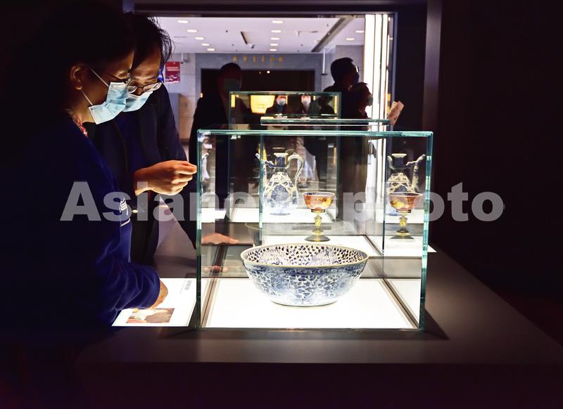 2021年10月29日,观众在上海博物馆观赏“东西汇融——中欧陶瓷与文化交流特展”。