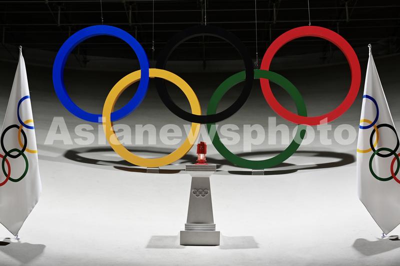 2021年10月28日,北京,在奥林匹克塔天穹厅展出的北京冬奥会火种灯。