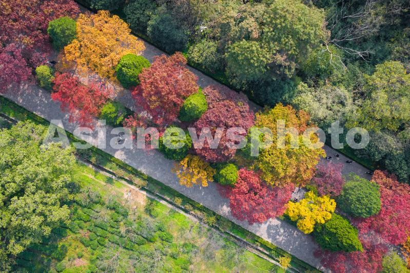 2021年10月30日,深秋时节,南京明孝陵景区石象路色彩斑斓,秋意浓浓,吸引不少游人前来休闲观光。
