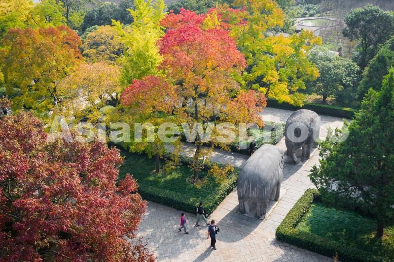 2021年10月30日,深秋时节,南京明孝陵景区石象路色彩斑斓,秋意浓浓,吸引不少游人前来休闲观光。