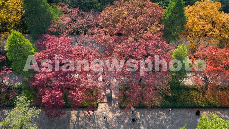2021年10月30日,深秋时节,南京明孝陵景区石象路色彩斑斓,秋意浓浓,吸引不少游人前来休闲观光。