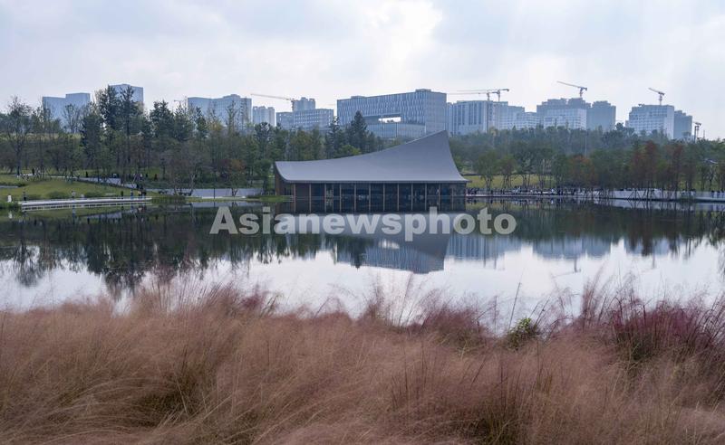 图片说明:2021年10月29日,成都兴隆湖边的书店。