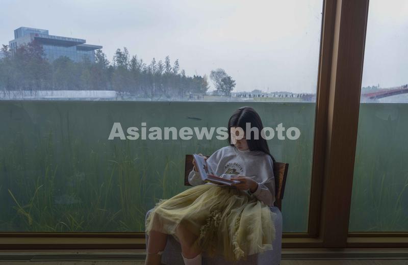 图片说明:2021年10月29日,成都兴隆湖边的书店吸引了众多市民前来打卡。