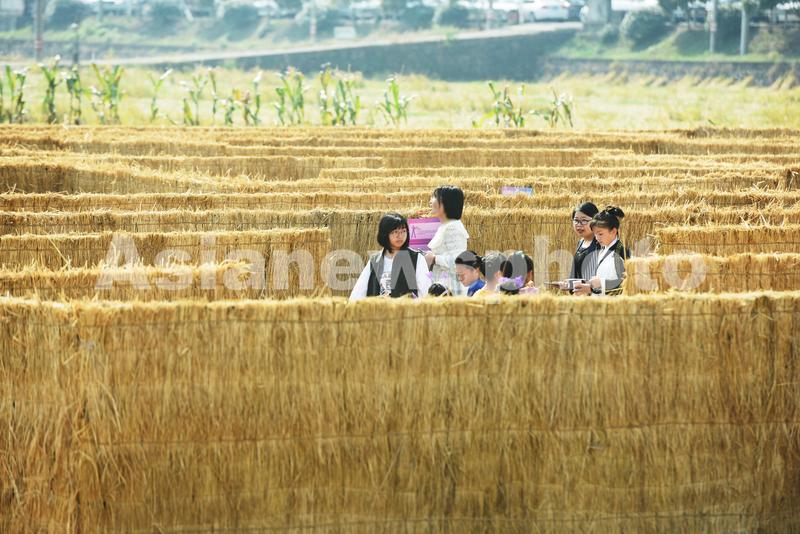 据了解,该巨型“稻田迷宫”占地近2000平方米,采用收割后水稻秸秆制成迷宫,实现了水稻秸秆环保利用。