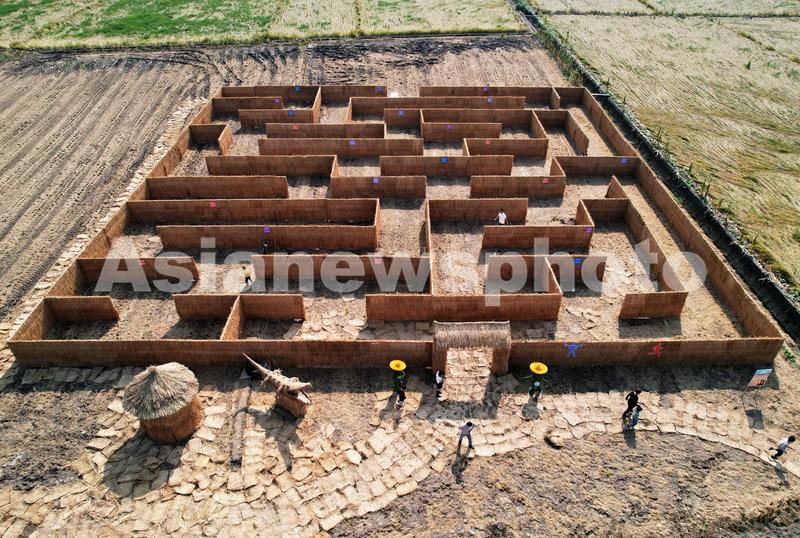 据了解,该巨型“稻田迷宫”占地近2000平方米,采用收割后水稻秸秆制成迷宫,实现了水稻秸秆环保利用。