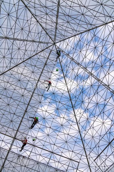 2021年11月4日,安徽省合肥市肥东县桥头集镇的安徽现代雾耕农业科技示范园项目一期建设工地,工人们正在铺设雾耕植物工厂温室阳光板。