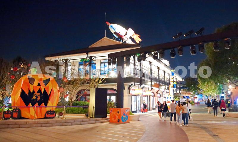 图片说明:2021年11月3日,上海,迪士尼小镇商业街夜景。