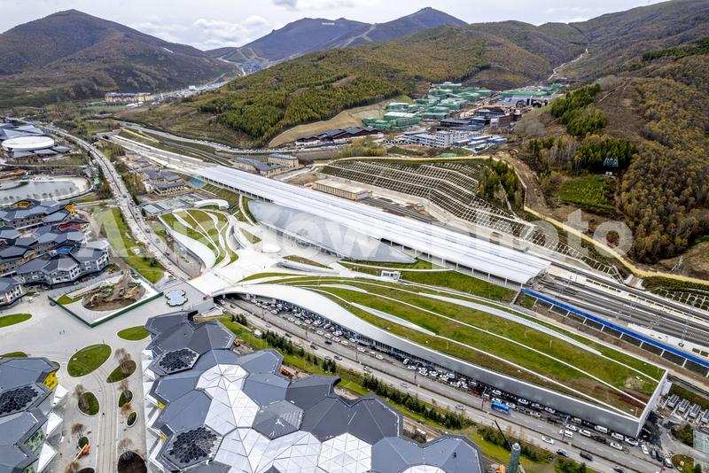 图片说明:2021年10月5日,河北省张家口市崇礼区四台嘴乡太子城村,太子城火车站。(无人机航拍)