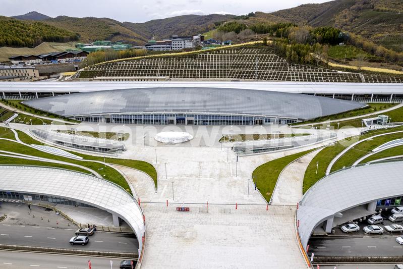图片说明:2021年10月5日,河北省张家口市崇礼区四台嘴乡太子城村,太子城火车站。(无人机航拍)