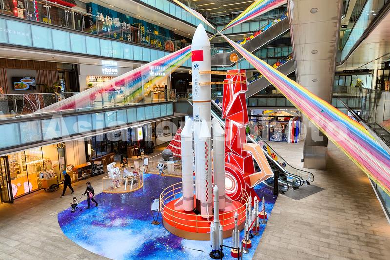 图片说明:2021年11月17日,上海,黄浦滨江绿地缤纷城正在举办航天IP先线下开放式主题展,展览科技感十足,观众可以感受到来自中国航天力量所带来的视觉震撼。