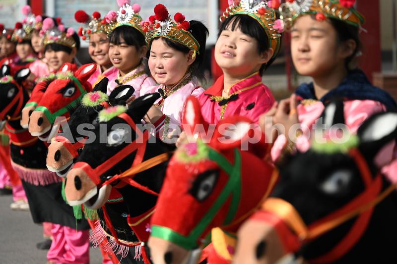图片说明:11月17日,河北省邯郸市肥乡区肥乡镇常耳寨小学的学生在学习跑竹马技艺。