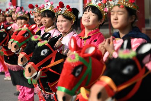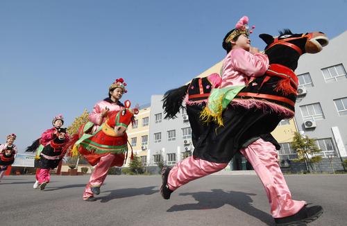 非遗跑竹马“舞”动校园 查看组图