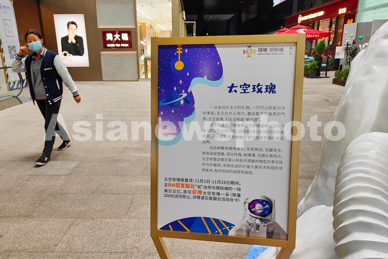 图片说明:2021年11月17日,上海,黄浦滨江绿地缤纷城正在举办航天IP先线下开放式主题展,展览科技感十足,观众可以感受到来自中国航天力量所带来的视觉震撼。