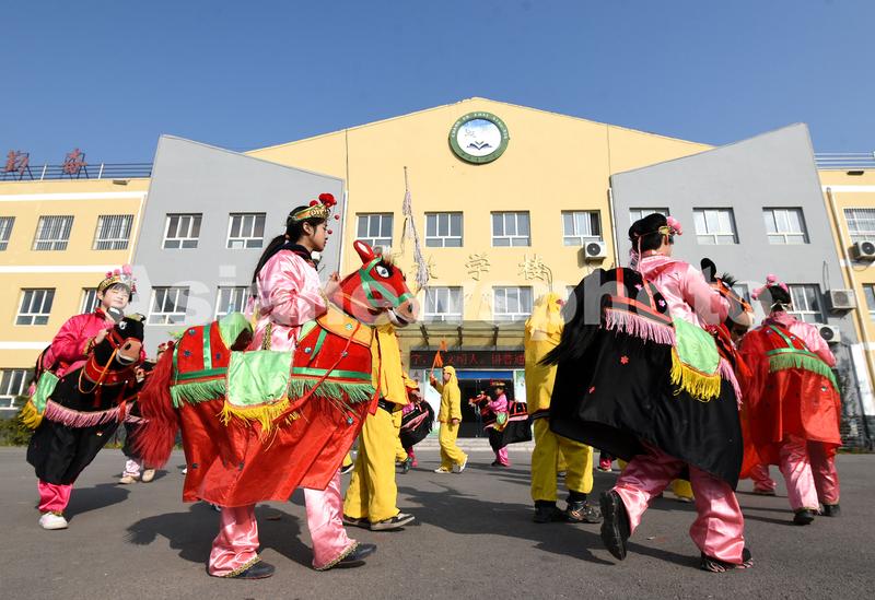 图片说明:11月17日,河北省邯郸市肥乡区肥乡镇常耳寨小学的学生在练习跑竹马。
