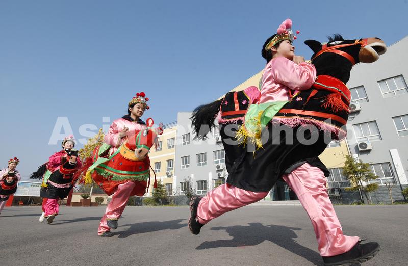 图片说明:11月17日,河北省邯郸市肥乡区肥乡镇常耳寨小学的学生在练习跑竹马。