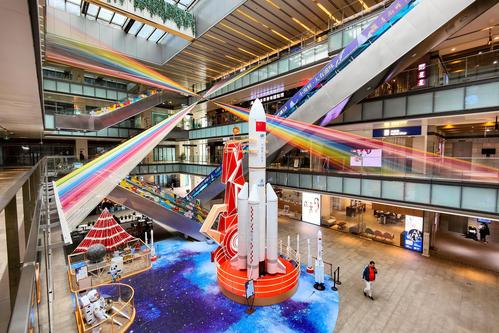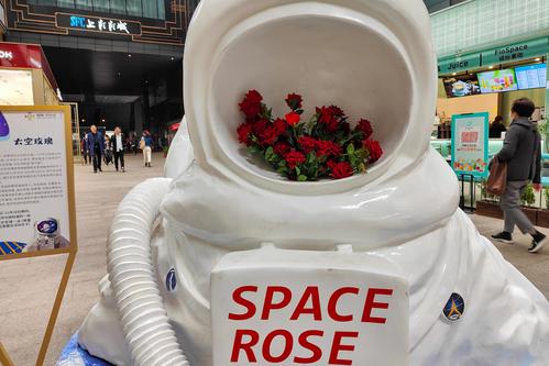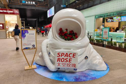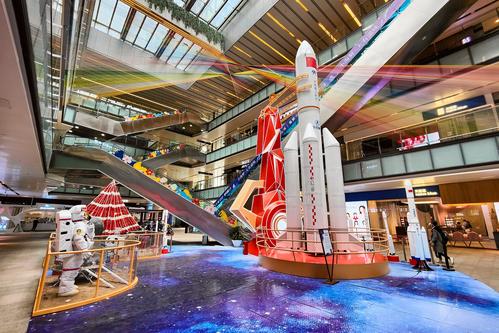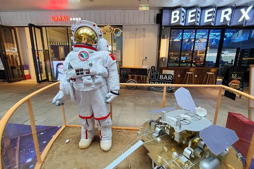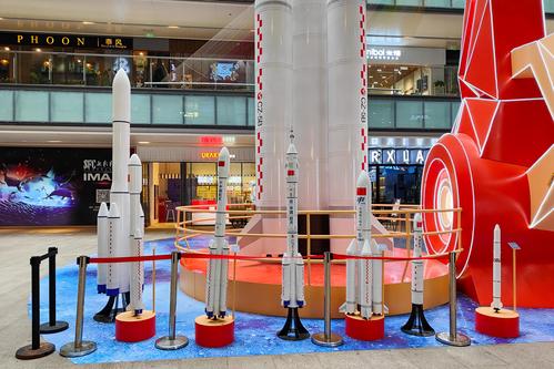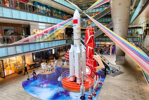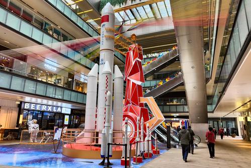 图片说明:2021年11月17日,上海,黄浦滨江绿地缤纷城正在举办航天IP先线下开放式主题展,展览科技感十足,观众可以感受到来自中国航天力量所带来的视觉震撼。