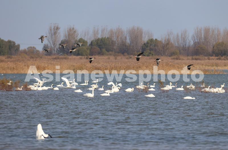 图片说明:11月16日,在黄河三角洲国家级自然保护区内,各种鸟类嬉戏觅食。