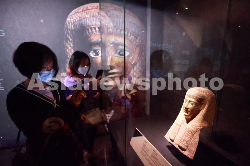 2021年11月14日,北京,观众在中华世纪坛艺术馆参观“遇见古埃及 黄金木乃伊”主题展。11月15日,主办方发布公告称,原定于11月15日结束的主题展延长展览至12月12日。