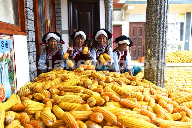 2021年11月16日,云南省大理州巍山县五印乡新民村委会别落古村彝族群众在家里晾晒玉米。初冬时节,云南省大理白族自治州巍山彝族回族自治县18万亩玉米喜获丰收,当地农民抢抓农时节令,抓紧收获晾晒金黄色的玉米,乡村一派丰收繁忙的喜人景象。近年来,巍山县党建引领粮食产业发展,积极调整农业种植结构,全面推进高标准农田建设,保障粮食生产安全,促进粮食增产农民增收。