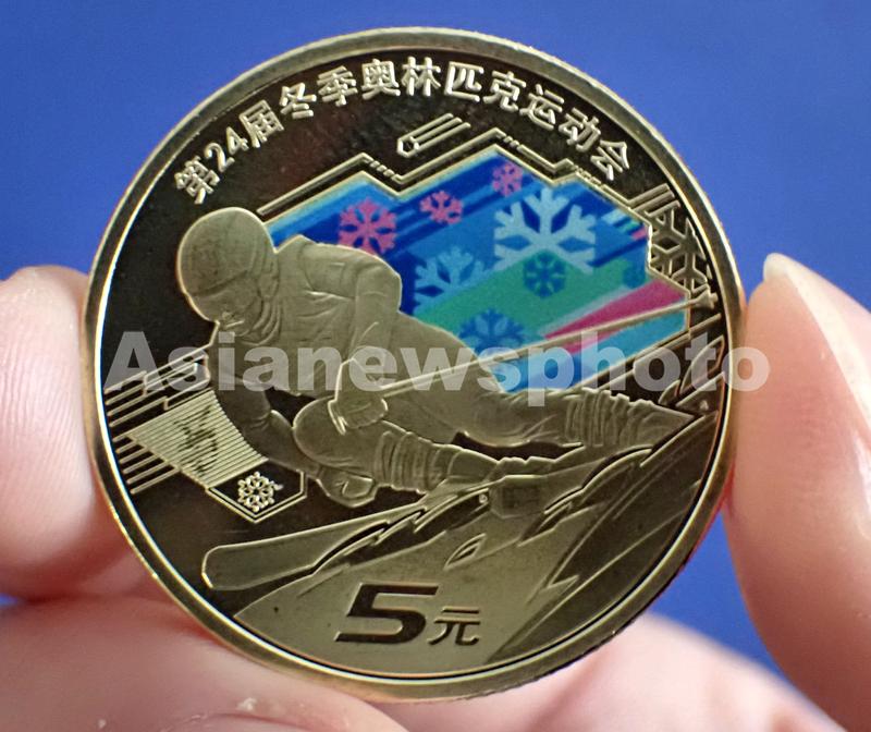 图片说明:2021年11月18日,江苏省张家港市民展示从银行兑换的2022年北京冬奥会纪念币。