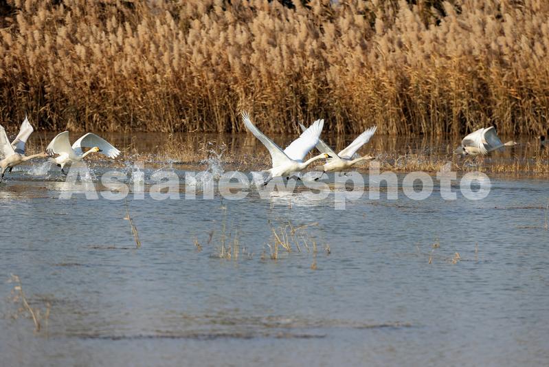 图片说明:11月16日,在黄河三角洲国家级自然保护区内,各种鸟类嬉戏觅食。