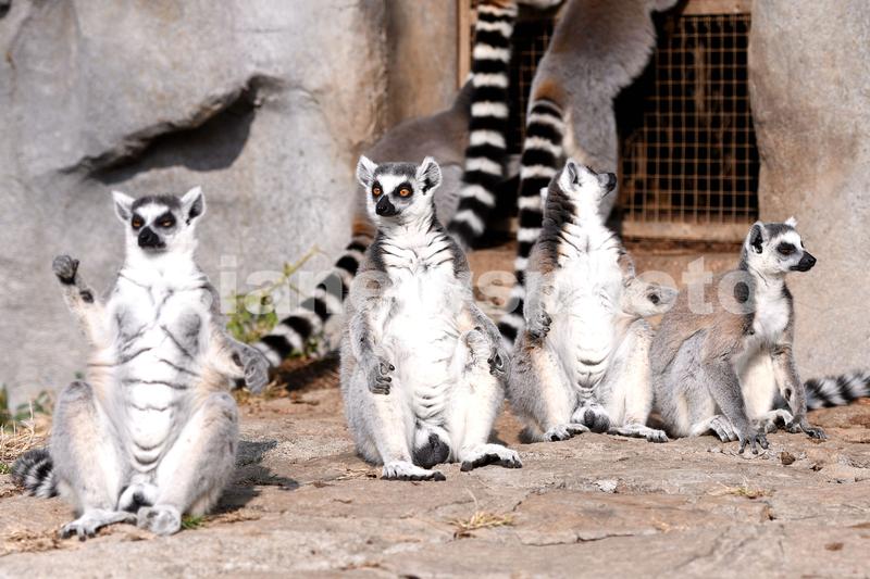 山东青岛:环尾狐猴集体打坐享受初冬暖阳 查看组图