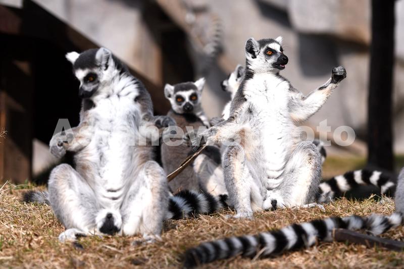 2021年11月18日,初冬时节,山东青岛森林野生动物世界狐猴岛内的环尾狐猴在被放出猴舍后,来到室外草坪或空地上打坐,打开四肢面对太阳,享受冬日太阳的温暖。环尾狐猴原产地是马达加斯加,它们在气温低于体温时喜欢晒太阳,且晒太阳的姿势十分可爱、惹人喜欢,所以当地人给了它们“太阳神的崇拜者”这一称号。目前,中国各大动物园都饲养有环尾狐猴这一可爱的小动物。