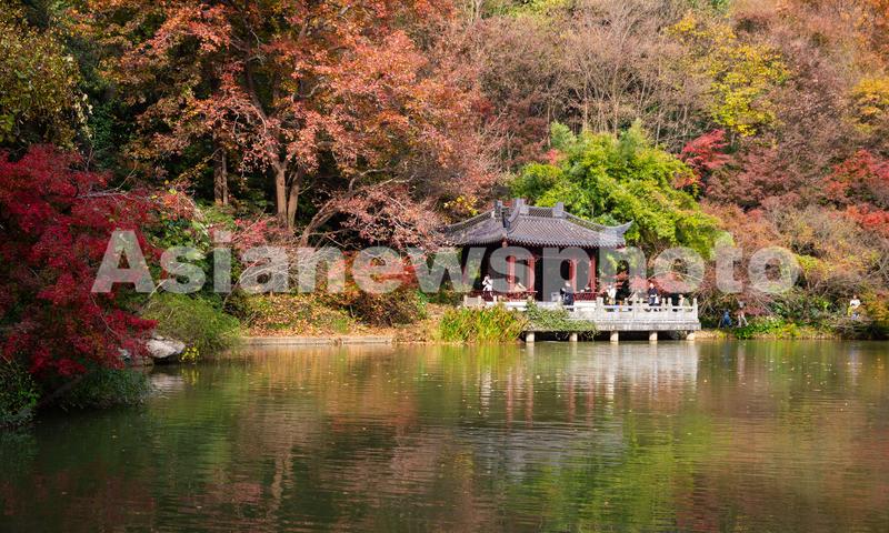 2021年11月20日,初冬时节,南京栖霞山风景区层林尽染,景色如画,景区内的红叶树种进入最佳观赏期,吸引不少游人前来观赏。