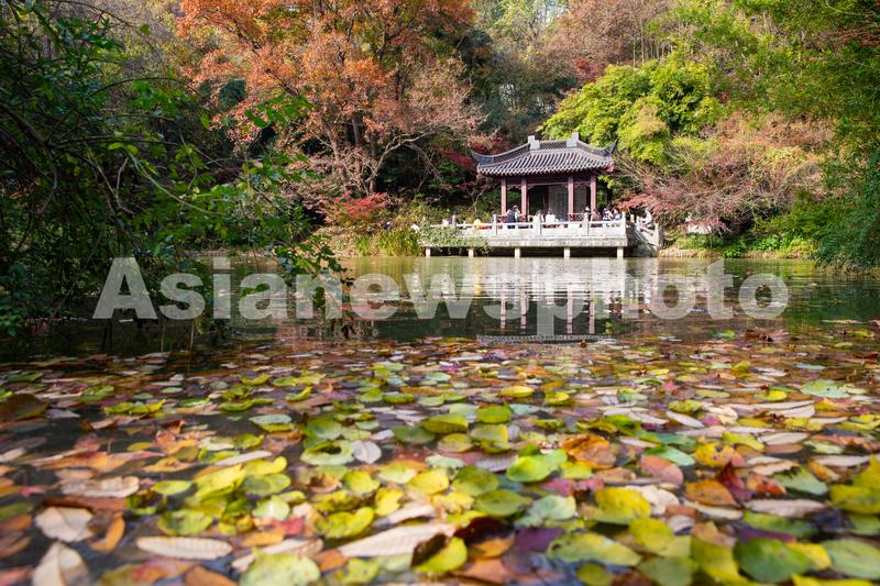 11月20日,在南京栖霞山风景区桃花湖拍摄的落叶。