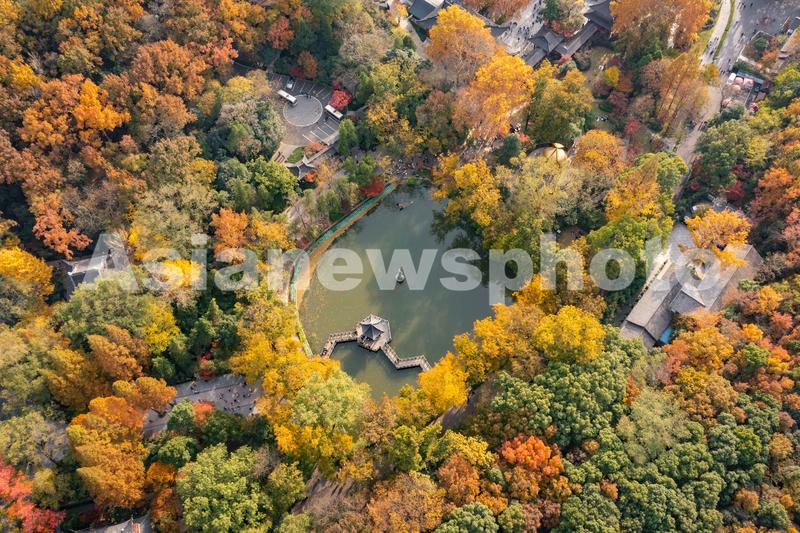 2021年11月20日,初冬时节,南京栖霞山风景区层林尽染,景色如画,景区内的红叶树种进入最佳观赏期,吸引不少游人前来观赏。