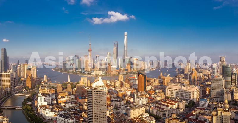 夕阳下的上海黄浦江两岸