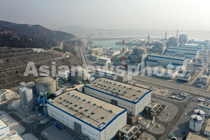 图片说明:2021年11月16日,在江苏省连云港市拍摄的中核集团田湾核电站1-6号机组全景(无人机照片)。