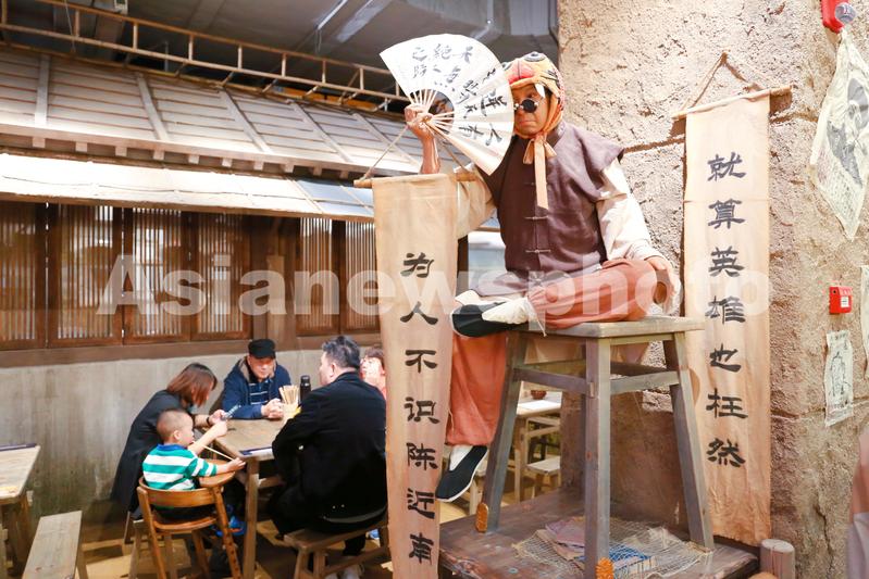 2021年11月13日,上海,古风武侠主题美食街“江湖-城市集市”成为北外滩新晋网红打卡街区。周星驰电影《鹿鼎记》的韦小宝逼真模型。