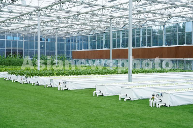 图片说明:2021年11月20日,在福建省平潭综合实验区君山镇芦北村的智能化温室玻璃大棚里,蔬菜通过温室大棚育苗技术和雾化栽培技术进行培育。