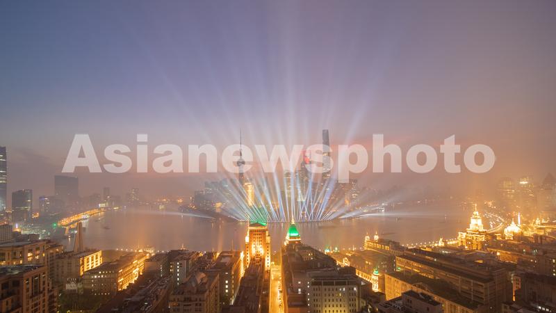 黄浦江两岸建筑亮灯测试