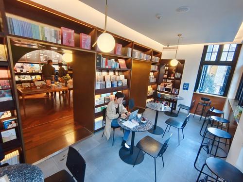 图片说明:2021年11月19日,上海,网红书店思南书局二层的文学和咖啡吧组成复古感十足的思南客厅。