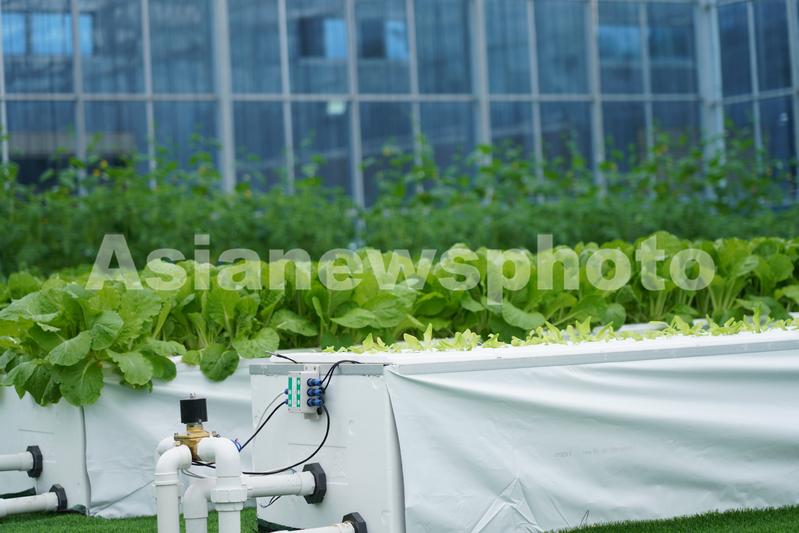 图片说明:2021年11月20日,在福建省平潭综合实验区君山镇芦北村的智能化温室玻璃大棚里,蔬菜通过温室大棚育苗技术和雾化栽培技术进行培育。