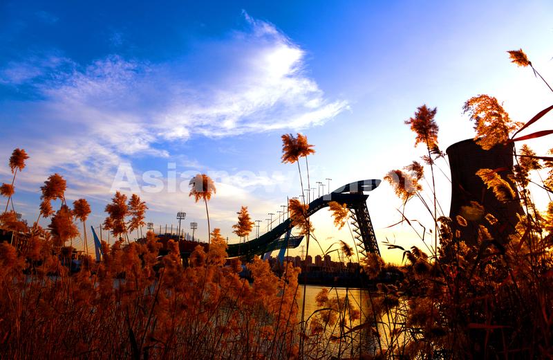 图片说明:11月13日。在北京首钢园滑雪大跳台,呈现漂亮的初冬美景。